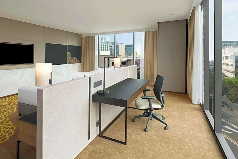 The spacious air-conditioned suite provides a flat-screen TV with cable channels, a tea and coffee maker, executive lounge access, a seating area as well as city views. The unit offers 1 bed.