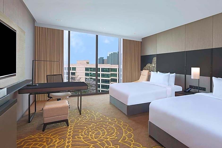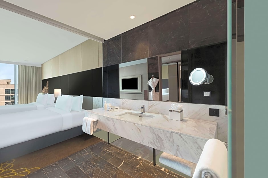 The spacious air-conditioned triple room offers a flat-screen TV with cable channels, a tea and coffee maker, executive lounge access, a seating area as well as city views. The unit offers 2 beds.